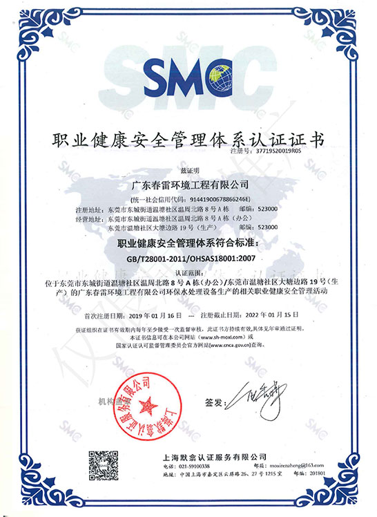 环境管理体系认证证书-中文