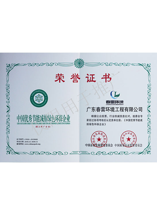 荣誉证书-中国优秀节能减排绿色环保企业